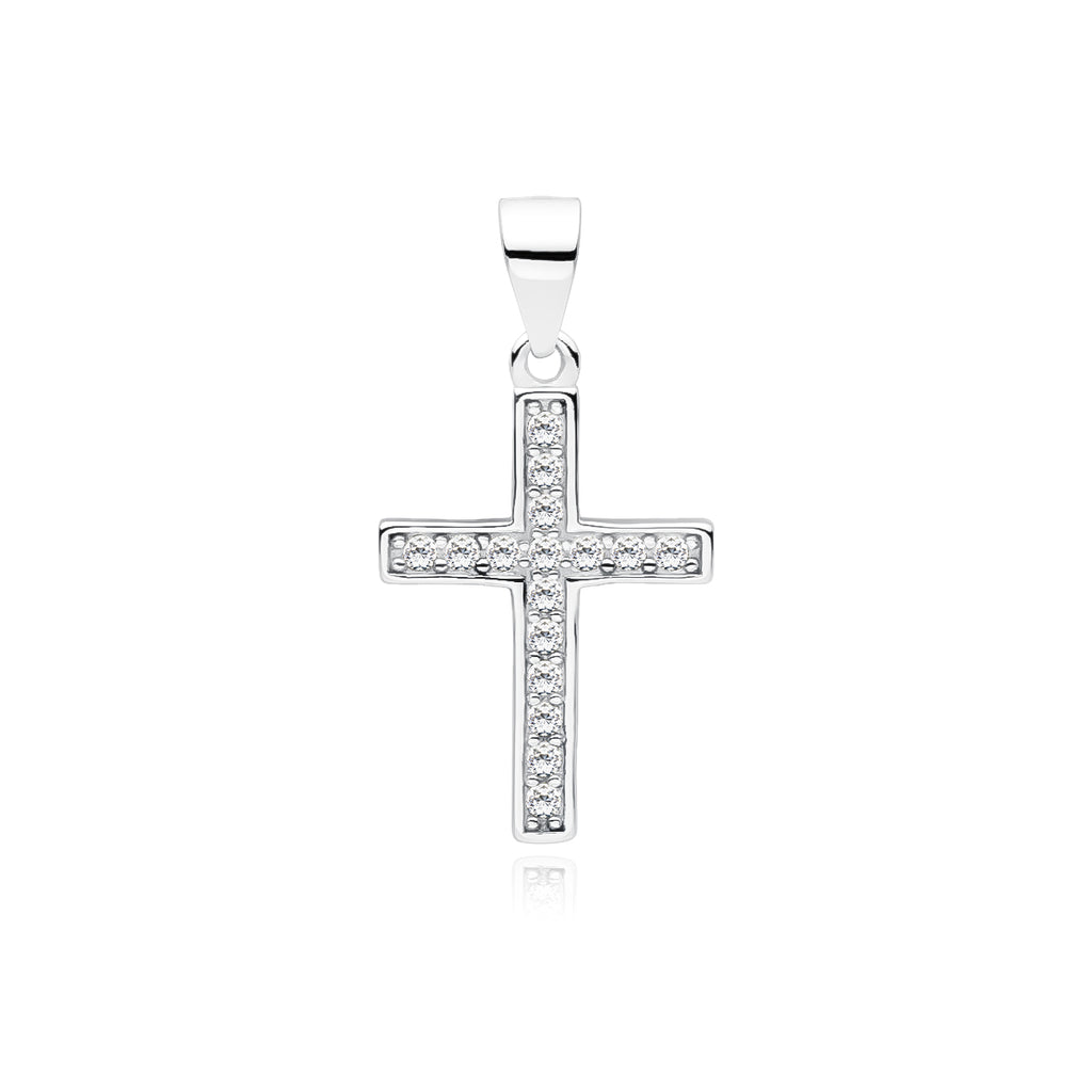 Hopeinen ristiriipus, jonka pintaa koristavat kauttaaltaan säihkyvät, kirkkaat zirkonia-korukivet. Koruosan koko on 13 x 26 mm. Tämä näyttävä risti on valmistettu laadukkaasta 925 sterling-hopeasta, ja sen viimeistelty olemus tuntuu laadukkaalta käytössä. Riipuksen mukana toimitetaan 45 cm mittainen hopeaketju. Klassinen ristiriipus on ajaton valinta ja sopii erinomaisesti esimerkiksi rippiristiksi tai lahjaksi.