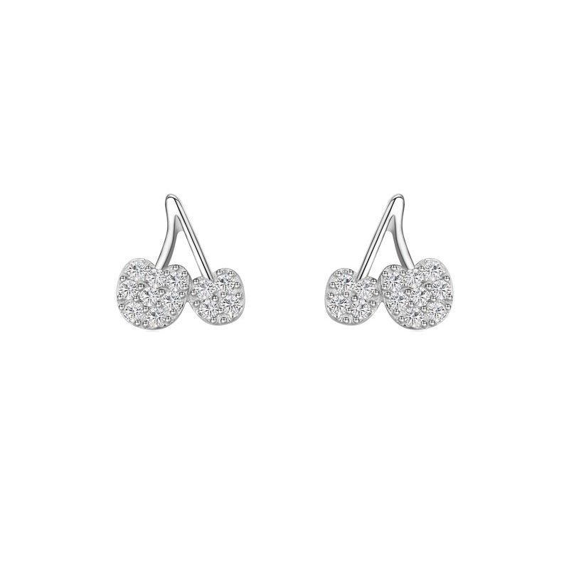 Sirot ja leikkisät hopeakorvakorut, jotka on muotoiltu suloisten kirsikoiden muotoon. Kirsikat on koristeltu kirkkailla, säihkyvillä zirkoneilla, jotka tuovat koruun ihastuttavaa kimallusta. Korvakorun koko on noin 8 x 8,5 mm. Korvakoruissa on tappikiinnitys ja ne on valmistettu laadukkaasta nikkelittömästä 925 sterling-hopeasta.