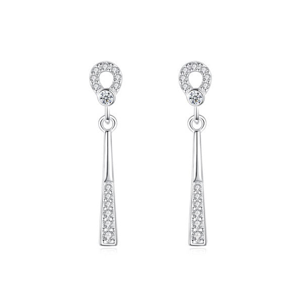 Elegantit roikkuvat hopeakorvakorut, joissa yhdistyvät kauniisti erilaiset muodot ja säihkyvät zirkoniat. Korun elegantti yläosa on zirkonein koristeltu, ja siitä roikkuu siro alaspäin levenevä riipus. Riipusosa on myös viimeistelty kauniilla zirkoneilla. Korvakorun leveys on noin 4,5 mm ja kokonaispituus 23 mm. Korvakoruissa on tukeva tappikiinnitys ja ne on valmistettu laadukkaasta nikkelittömästä 925 Sterling-hopeasta.
