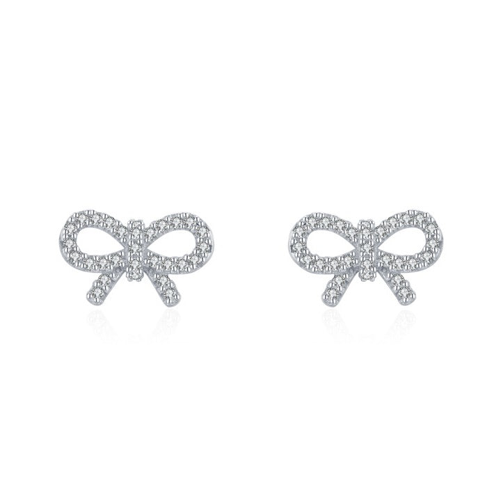 Säkenöivät hopeakorvakorut, jotka on muotoiltu näyttävän, solmitun rusetin muotoon. Rusetin kauniisti kaartuvat linjat on upotettu täyteen kirkkaita zirkoneita. Korvakorun koko on noin 12 x 7 mm. Korvakoruissa on tappikiinnitys ja ne on valmistettu laadukkaasta nikkelittömästä 925 sterling-hopeasta.